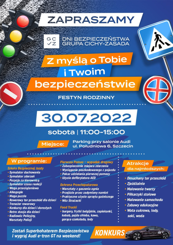 Lokalizacja festynu: parking przy salonie Audi Szczecin Cichy-Zasada, sobota 30.07, o godz. 11:00-15:00.