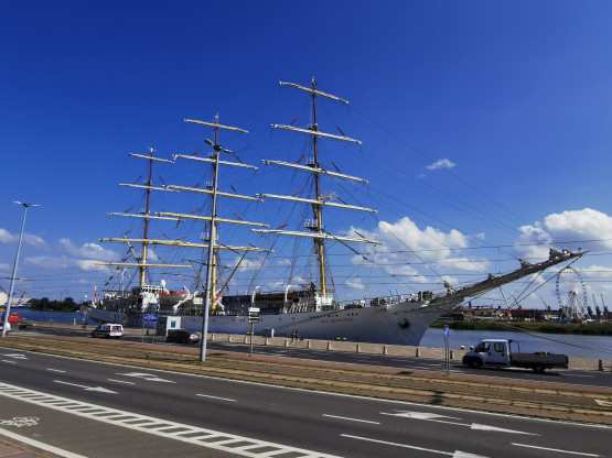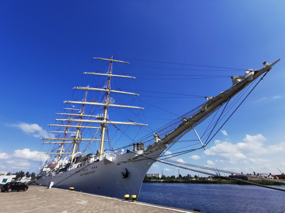 Dar Młodzieży nie mógł pojawić się w weekend podczas Żagli 2022, przypłynął za to w czwartek. Pozostanie w Szczecinie do sobotniego przedpołudnia.