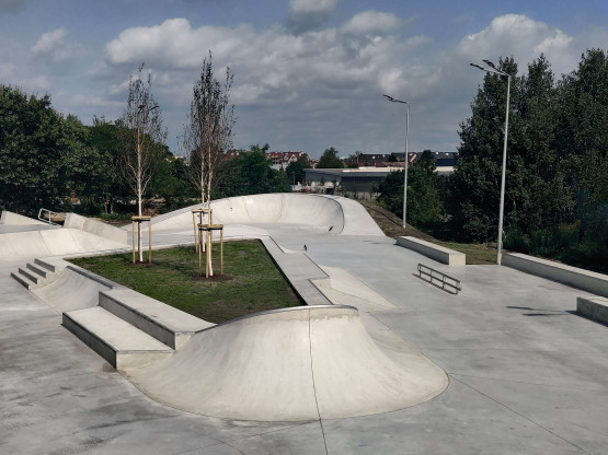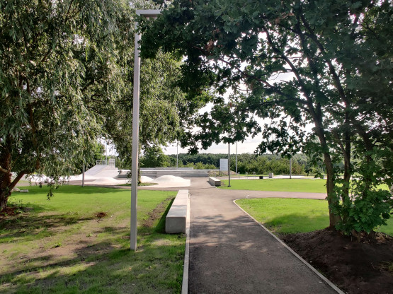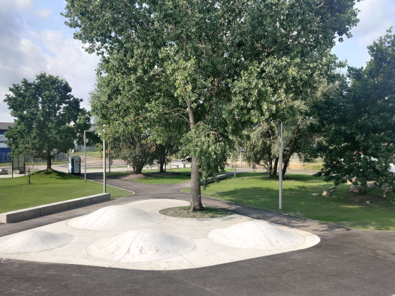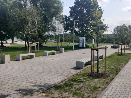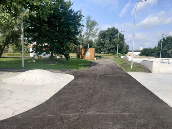 Betonowy krajobraz skateparku mają urozmaić nowe nasadzenia zieleni. Wokół toru pojawiły się m.in. brzozy czy glediczje, założono też nowe trawniki.