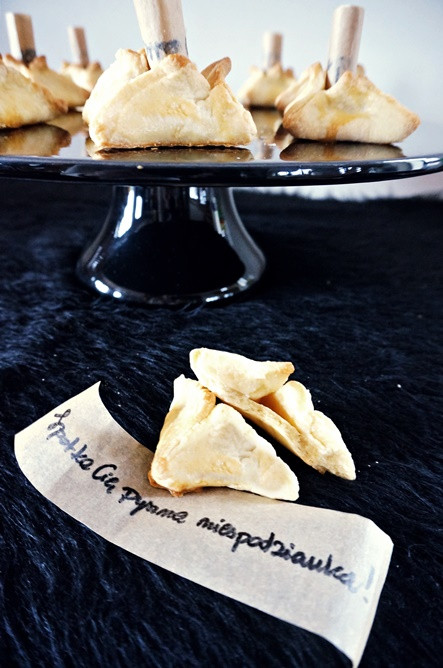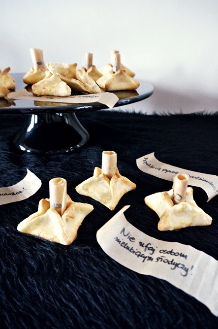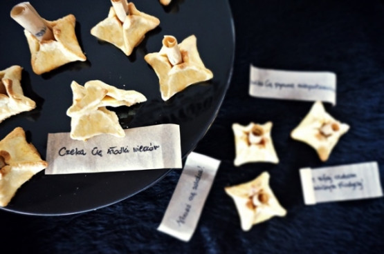 Jak już odzyskaliśmy odpowiednie krążenie, a siny nos ustąpił miejsca rumianym policzkom, czas rozpocząć andrzejkową zabawę. O tym, jaka czeka nas przyszłość, co się jeszcze wydarzy w naszym życiu i czego na wszelki wypadek unikać możemy się dowiedzieć z kruchych ciasteczek. W wykonaniu są banalne, a na pewno zaskoczą gości.