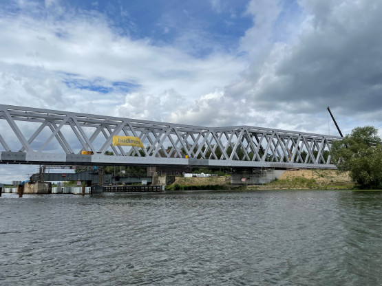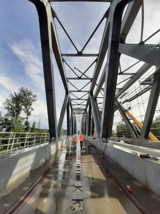 Most tworzyć będą dwie konstrukcje, oddzielne dla każdego z torów. Operacja przesunięcia pierwszej z nich rozpoczęła się w ubiegłym tygodniu, druga odbywa się w tym. Umieszczenie ostatniego przęsła planowane jest 2 sierpnia. Nowa przeprawa ma być oddana do użytku do 20 grudnia.