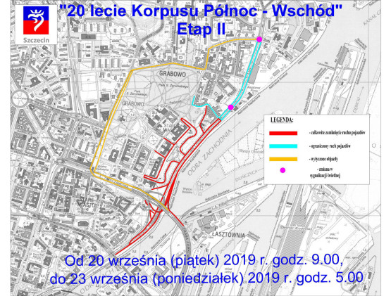 Linia autobusowa nr 526 (od nocy z 20 na 21 września) – kursować będzie objazdem w obu kierunkach od przystanku ,,Wyszyńskiego’’ przez: Jana z Kolna – Trasa Zamkowa – Matejki – Malczewskiego – Parkową – Dubois, do przystanku „Dubois” i dalej swoją stała trasą, wg normalnego rozkładu jazdy. Czasowej likwidacji ulegną przystanki: „Wały Chrobrego” i „Dworzec Morski”.