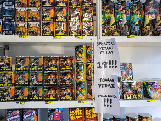 – Najwięcej sprzedaje się petard hukowych. To jest produkt, który zawsze idzie „na pierwszy ogień” jeżeli chodzi o kupujących po świętach. Potem klienci wybierają baterie pirotechniczne, a na koniec także rakiety. Baterie same tworzą pokaz pirotechniczny, my tylko odpalamy lont. Rakiety wymagają więcej pracy i zaangażowania, ale dają też więcej zabawy. Rakiet jest w opakowaniu od 5 do nawet 30 sztuk. W przypadku baterii pokaz trwa od 30 sekund do nawet kilku minut – mówi nasz rozmówca. – Jesteśmy w stanie dopasować asortyment do potrzeb osób poszukujących. Od fajerwerków dla nastolatków, którzy przychodzą nawet z dziadkami na stoiska z fajerwerkami. Inni chcą za to widowiska lub po prostu huku. Zawsze doradzimy odpowiednie zaopatrzenie – zapewnia Adrian Wiśniewski.