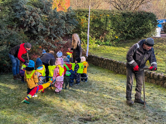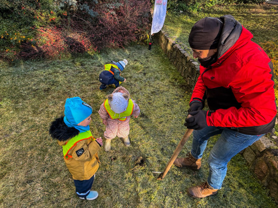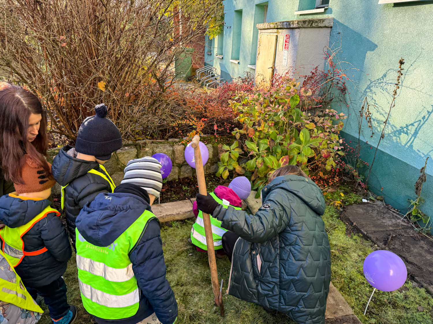 Najpierw maluchy z przedszkola i żłobka „Małe Omnibuski” z cierpliwością słuchały rad Sylwiusza Mołodeckiego i Marii Myśliwiec, a gdy łopaty poszły w ruch, z nieukrywaną radością wrzucały cebulki do dołków i z całych sił udeptywały ziemię – co by ptaki niczego nie wydziobały. Łącznie na trawniku przy ul. Zdrojowej 23-25 posadzono 2 tysiące krokusów.