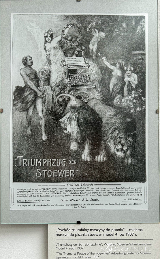 – Pierwsze miejsce, jeśli chodzi o reklamę maszyn do pisania, należy się Remingtonowi. Firma kojarzona głównie z bronią, była wtedy pierwszym producentem wspomnianych urządzeń. Remington nie ograniczał się do zwykłego przekazu tylko czerpał z życia codziennego – mówi Sabina Wacławczyk. – Drugim producentem, który do reklam podszedł kreatywnie, był nie kto inny jak Bernhard Stoewer ze Szczecina.