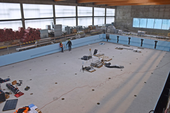 W hali basenowej znajdzie się 25-metrowy basen pływacki (6 torów) o głębokości 1,2-1,8 m oraz basen rekreacyjny o powierzchni 162 m2 i głębokości 90-120 cm. W mniejszej niecce basenowej zaplanowano 3 tory do nauki pływania i 9-metrową zjeżdżalnię. W budynku zaplanowano również sale fitness i dwie sauny fińskie. Będzie też trybuna oraz galeria widokowa. Postęp prac na placu budowy można śledzić dzięki raportom przygotowywanym przez miejskich urzędników.
