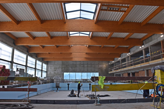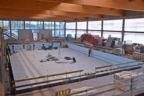 – W tym tygodniu zainstalowana została niecka basenu pływackiego. W najbliższym czasie podobne prace będą realizowane na basenie rekreacyjnym. Wewnątrz obiektu prowadzone są roboty instalacyjno-wykończeniowe. Trwa montaż ogrzewania podłogowego oraz wentylacji. W pomieszczeniach znajdujących się w piwnicy ułożona jest już glazura. Zainstalowana jest także technologia basenowa - zbiorniki przelewowe, pompy, filtry, orurowanie do napełniania wody w basenie. Na zewnątrz obiektu widoczna jest część elewacji, zainstalowane są okna, wykonywane jest ocieplenie – informuje Piotr Zieliński, rzecznik prasowy miasta ds. inwestycji.