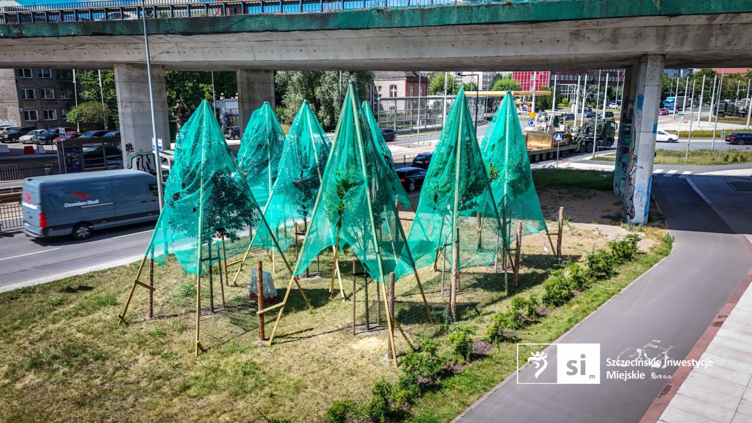 Siatki na koronach drzew mają za zadanie chronić zieleń przed uszkodzeniami, które mogą powstać podczas prac na wysokościach.