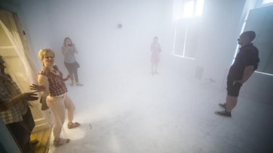 Równie intrygujący jest pokój z mgłą, do którego każdy wchodził z ogromną ciekawością, ale i poczuciem lekkiej niepewności. Pomieszczenie wypełnia gęsta mgła, a dodatkowo podłoga jest nierówna. - Czuje się jak na pokładzie statku – mówiła jedna z uczestniczek piątkowego wernisażu. - Ja z kolei mam wrażenie, że trafiłam na łąkę. Taką o poranku, całkowicie spowitą mgłą – dopowiadała jej koleżanka. Uwagę zwracają również posklejane „Porterty Potłuczone” Keda Olszewskiego czy niezwykle prosta instalacja z pręta i szklanki wody pt. „Ciało”.