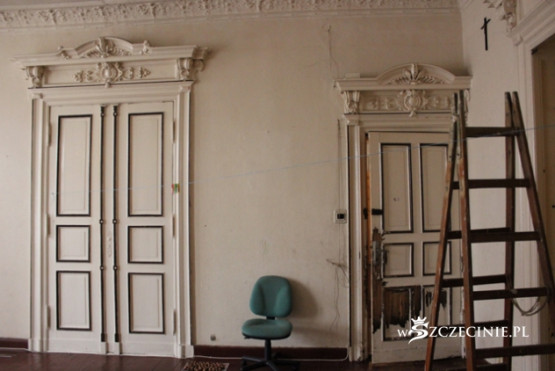 I dekoracje zostały. Piękne sufity, niesamowite zdobienia, które można ujrzeć, gdy zadrze się głowę. Ogromne drzwi – również oryginalne – a nad nimi płaskorzeźby. Ale kiedyś mogło tutaj być jeszcze piękniej.