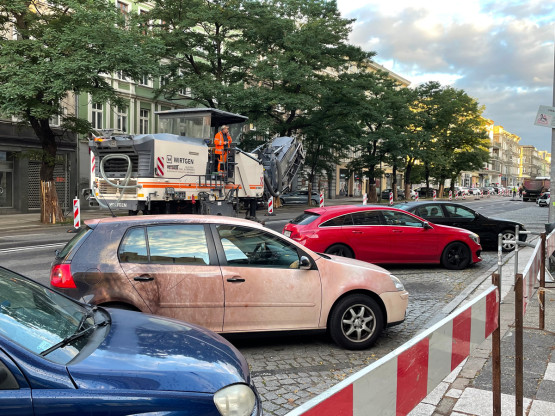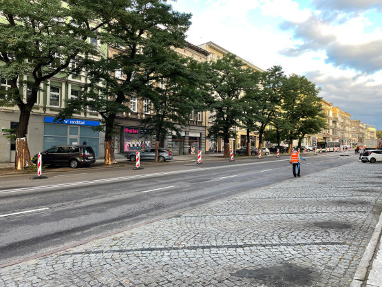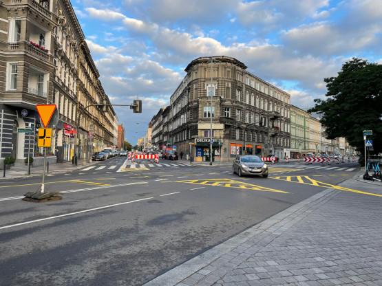 Dodajmy, że w poniedziałek rano – pomimo zakazu – nadal można było zobaczyć zaparkowane samochody po obu stronach przebudowywanego fragmentu ulicy.