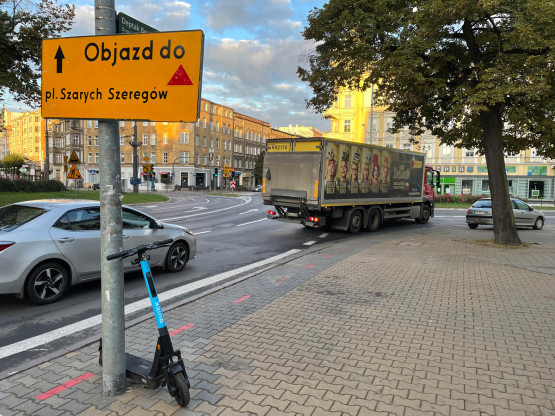 Przypominamy: zamkniętym odcinkiem mogą przejeżdżać tylko pojazdy komunikacji miejskiej, a w godz. 23-7 mogą wjeżdżać tylko pojazdy z zaopatrzeniem. Na placu Zgody obowiązuje tylko ruch okrężny. Na ulicy Jagiellońskiej (w kierunku skrzyżowania z al. Wojska Polskiego) wyłączony z ruchu został dotychczasowy pas do jazdy na wprost. Z prawego pasa można jechać na wprost – dalej ul. Jagiellońską – oraz w lewo, w al. Wojska Polskiego.