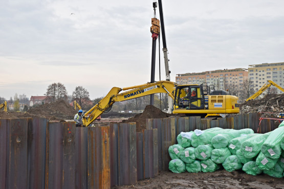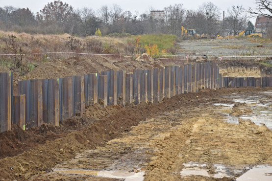 - Odhumusowano ten teren (czyli usunięto warstwę ziemi roślinnej do głębokości ok. 15-30 cm - przyp. red.), zabezpieczono wykop poprzez wwbirowywanie ścianki szczelnej – informuje Piotr Zieliński, rzecznik prasowy miasta ds. inwestycji. - W kolejnych dniach prace przy wwibrowywaniu ścianki szczelnej powinny być zakończone. Gotowa powinna być również platforma dzięki której wykonana zostanie przesłona filtracyjna dla budynku basenowego. W planach jest zakończenie prac przy przebudowie kanalizacji sanitarnej przy ulicy Bożeny oraz rozpoczęcie prac ziemnych pod budynkiem edukatorium.