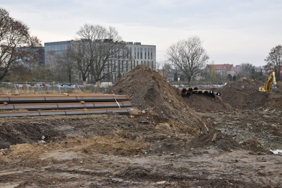 Zakres prac prowadzonych obecnie na dawnej Gontynce jest jednak szerszy. Zakończono już roboty przygotowawcze. (m.in. podłączono media do zaplecza budowy, zabezpieczono szpaler okazałych lip przed uszkodzeniami i przeprowadzono rozpoznanie saperskie) Przystąpiono również do pierwszych prac budowlanych w miejscu, w którym stanie budynek z basenami.