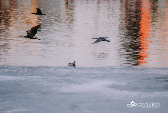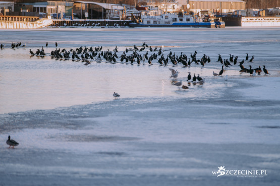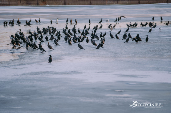 Od kilku dni na niezamarzniętym fragmencie Odry przy Moście Długim można zobaczyć tysiące ptaków. Przyleciały tutaj, żeby szukać pożywienia, o które trudno na zamarzniętym jeziorze Dąbie. Najwięcej jest kormoranów i czapli.