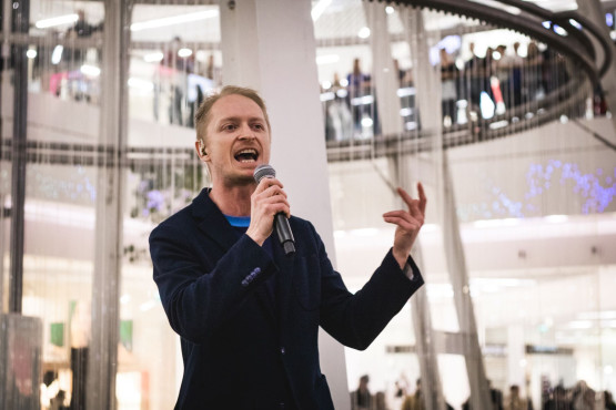 Flash mob, bowiem taki charakter przyjęło wydarzenie, polegał na wykonaniu hiszpańskiego utworu „Alegria" Cirque de Soleil. Na scenie, którą w tym przypadku była fontanna, wystąpili Olek Różanek, Jarosław Chilikiewicz, Alicja Kruk. Z kolei balustrady na piętrze zostały zajęte przez Chór Politechniki Morskiej w Szczecinie pod dyrekcją Sylwii Fabiańczyk-Makuch.