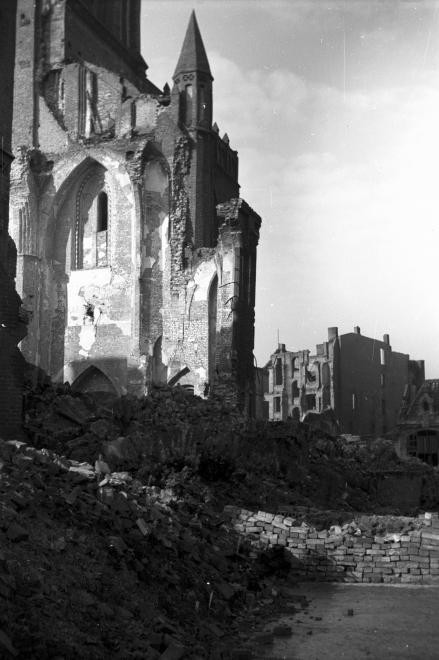 Ruiny katedry i ul. Mariacka / 1947 / źródło: Fortepan.hu/Bogdan Celichowski