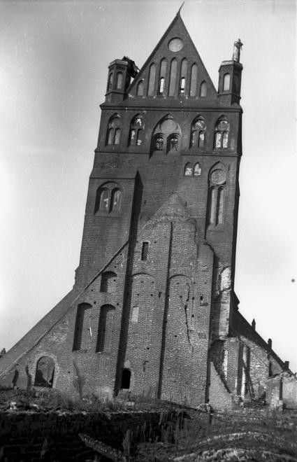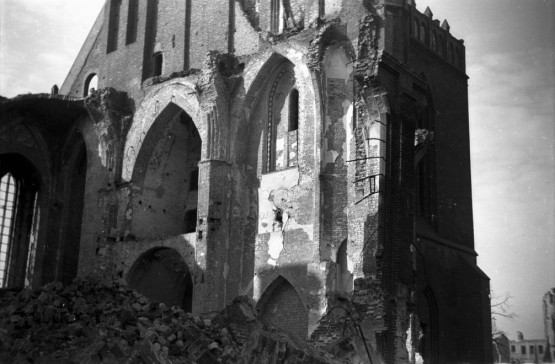 Jeszcze bardziej zrujnowana wydaje się dzisiejsza Bazylika archikatedralna św. Jakuba (odbudowano ją dopiero w latach 70., a wieża odzyskała swój przedwojenny wygląd w 2008 r.). Autor zdjęć z zacięciem architekta stara się uwiecznić najcenniejsze szczegóły zrujnowanej budowli.