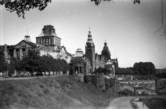 Stare Miasto naprzeciwko budynku Pomorskiego Uniwersytetu Medycznego / 1947 / źródło: Fortepan.hu/Bogdan Celichowski