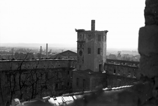 Ocalała Baszta wśród ruin / 1947 / źródło: Fortepan.hu/Bogdan Celichowski