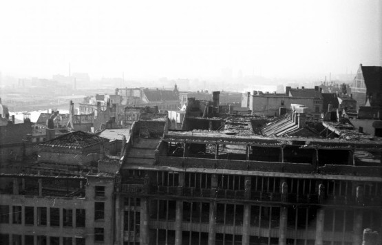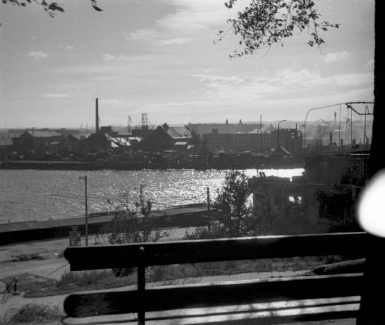 Widok na Odrę i port z Wałów Chrobrego / 1947 / źródło: Fortepan.hu/Bogdan Celichowski