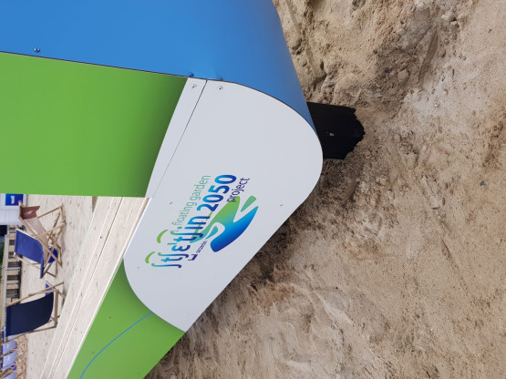 Ramka do robienia zdjęć z Wałami Chrobrego w tle ma prawie 3 metry wysokości i 4 metry szerokości. Jest w kolorach Szczecin Floating Garden 2050.