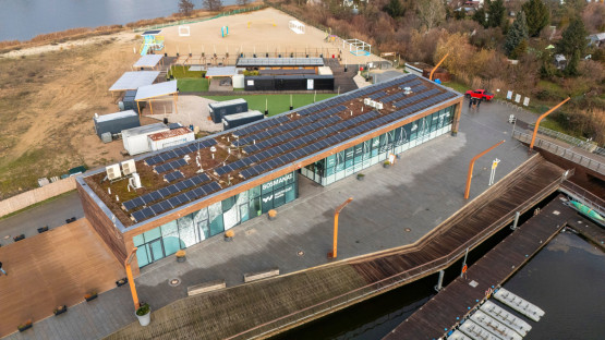 Energia pozyskiwana dzięki panelom fotowoltaicznym zasili bosmanat, pompę ciepła, przepompownię, most zwodzony i słupki dystrybucyjne dla obsługi żeglarzy.