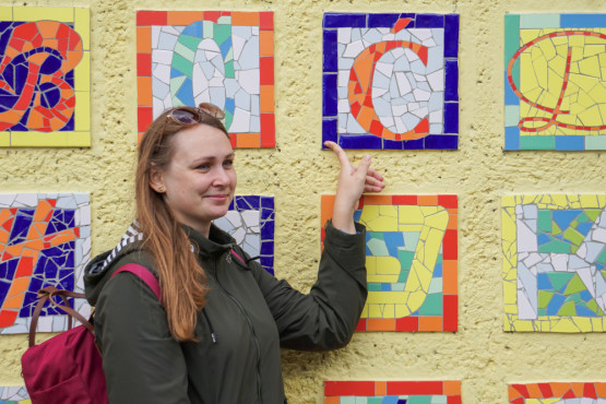 – Najtrudniejsze były do znalezienia polskie znaki. „Ó” jest charakterystyczne i bardzo ładnie wygląda w szyldzie kwiaciarni „7 Róż” przy alei Wojska Polskiego. „Ą” również nie było łatwe, ale kiedy dowiedziałam się, że będziemy robić taką mozaikę, to od razu wiedziałam skąd będzie – opowiada Ada Krawczak.