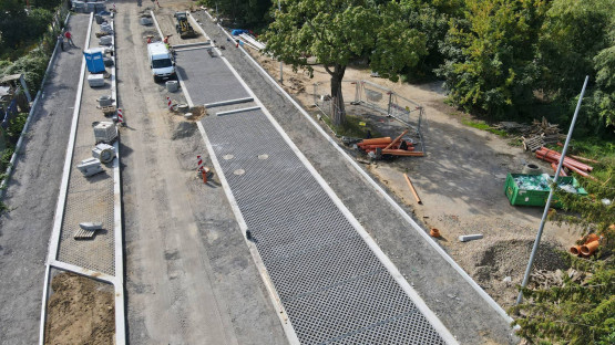 – Oprócz prac związanych z przygotowaniem warstw konstrukcyjnych pod budowę nowej drogi, miejsc postojowych i ciągu pieszo-rowerowego, trwa aktualnie budowa nowych miejsc postojowych. Płyty ażurowe układane są na kolejnym fragmencie inwestycji. W ramach robót brukarskich ustawiane są krawężniki, a na zainstalowanych słupach oświetleniowych systematycznie montowane są oprawy – informuje Piotr Zieliński, rzecznik prasowy miasta ds. inwestycji.