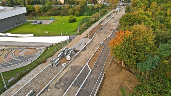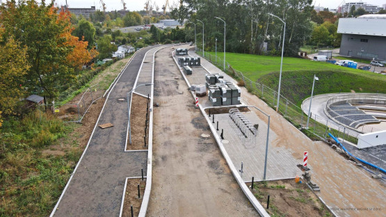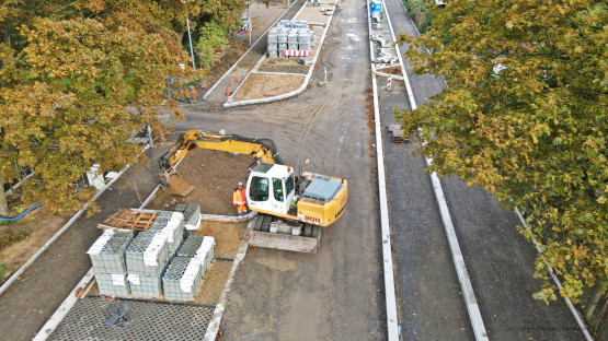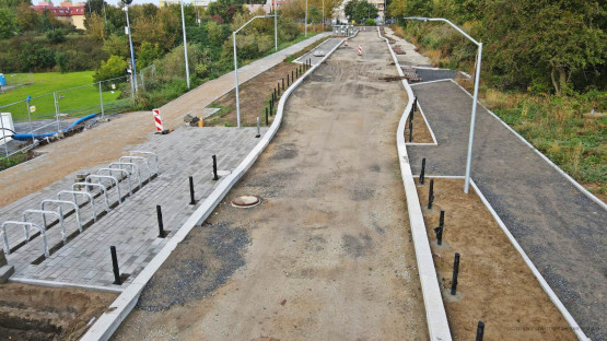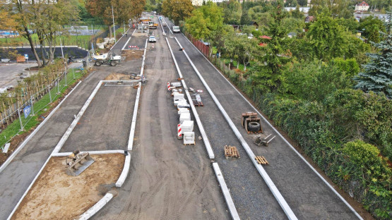 – Prowadzone są prace brukarskie związane z układaniem krawężników oraz nawierzchni miejsc postojowych. Trwa montaż słupów oświetleniowych oraz prowadzona jest bieżąca regulacja wpustów deszczowych i włazów kanalizacyjnych. Jednocześnie realizowane są prace przygotowawcze pod budowę nowej jezdni ulicy i ciągu pieszo-rowerowego. To profilowanie i zagęszczanie kruszywa podbudowy zasadniczej na całym odcinku, co oznacza, że w najbliższych dniach rozpocznie się układanie mas bitumicznych – informuje Piotr Zieliński, rzecznik prasowy miasta ds. inwestycji.