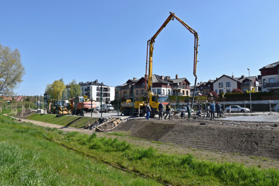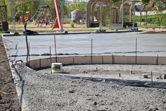 – W ramach realizowanych robót wykonano już kanalizację teletechniczną monitoringu, drenaż boiska i podłączenie go do kanalizacji deszczowej. Gotowa jest drewniana pergola. Zrealizowano również prace przy wymianie gruntu pod boiskiem – wylicza Piotr Zieliński, rzecznik prasowy miasta ds. inwestycji. – Aktualnie prowadzone są roboty przy wylewce betonowej pod budowę nawierzchni placu aktywności. Przy boisku widoczne są pionowe słupy ogrodzenia, wysypana jest również warstwa kruszywa. W dalszej kolejności układane będą kolejne warstwy konstrukcyjne nawierzchni – zapowiada.