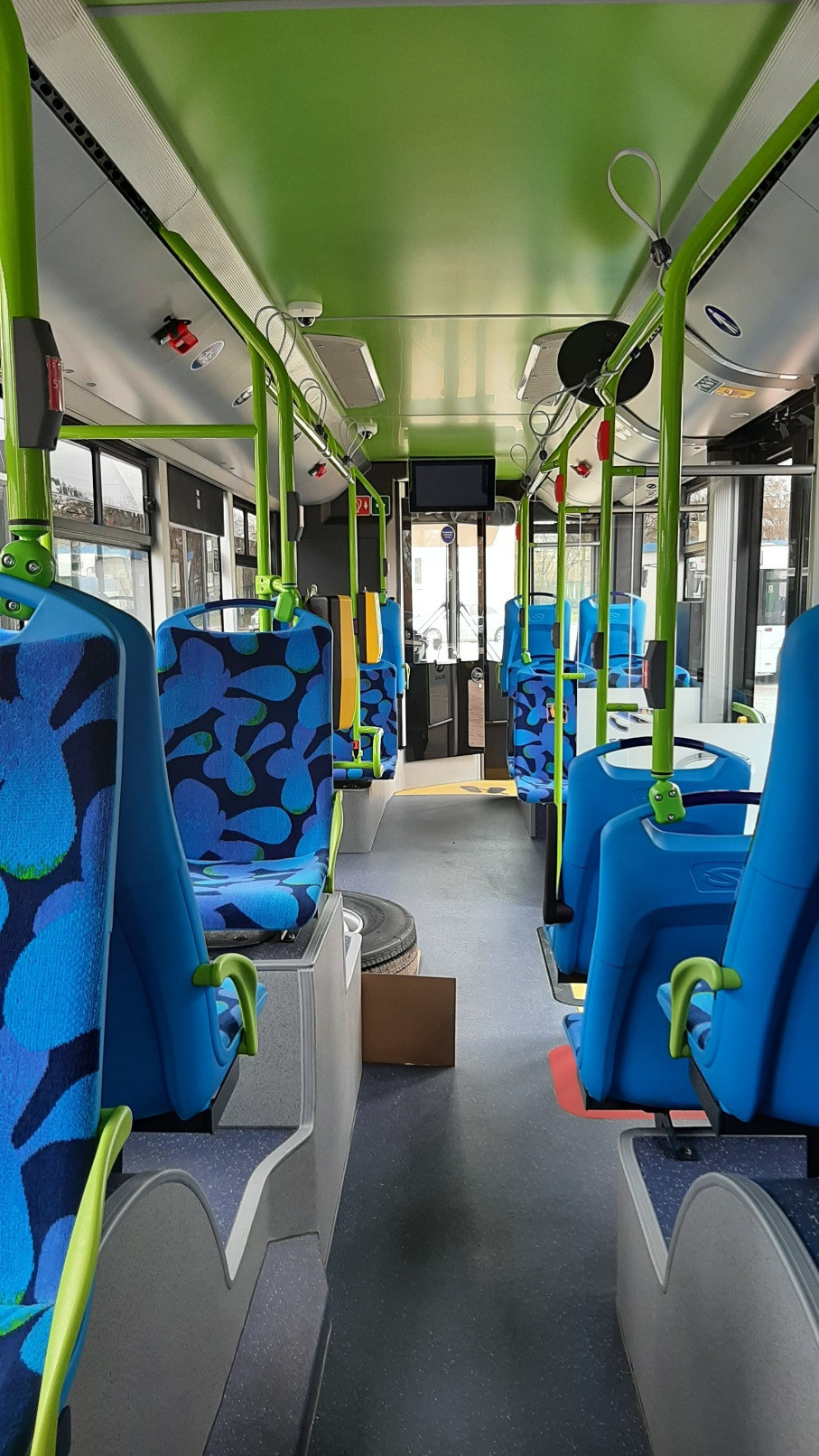 Autobusy mogą zabrać 75 pasażerów, w tym 28 na miejscach siedzących. Są wyposażone w klimatyzację, rampę najazdową dla wózków, dwie dwuportowe ładowarki USB i oświetlenie LED. Monitoring złożony jest z ośmiu kamer