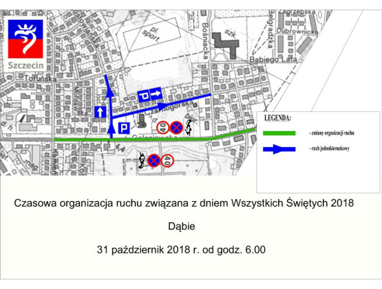 W rejonie cmentarza w Dąbiu obowiązuje ograniczenie prędkości w ciągu ul. Goleniowskiej do 40 km/h. Wprowadzono też ruch jednokierunkowy w ciągu ul. Jugosłowiańskiej do ul. Toruńskiej i ul. Czarnogórskiej od ul. Jugosłowiańskiej do ul. Bośniackiej.
