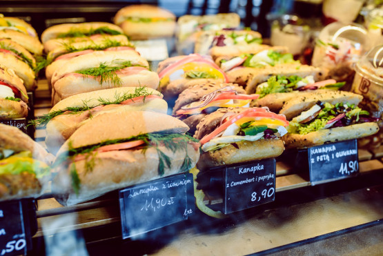 Bagietka przy pl. Zgody bardziej niż sklep z pieczywem przypomina restaurację, do której można wpaść na szybkie śniadanie czy lunch. Jest dużo stolików, zadbano o odpowiedni wystrój. W ofercie królują oczywiście propozycje związane z wypiekami. Wszystko przygotowywane jest na miejscu ze świeżych i naturalnych składników. Bez dodatku wzmacniaczy smaku czy środków spulchniających. Do wyboru są różnego rodzaju kanapki i ciabiatty. Focacchia z oliwkami na długo dojrzewającym zakwasie czy bajgle na zakwasie gronowym.