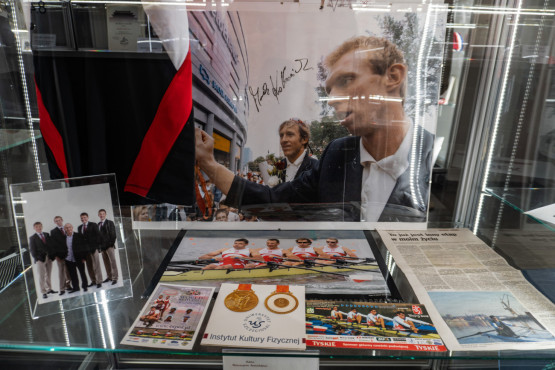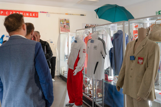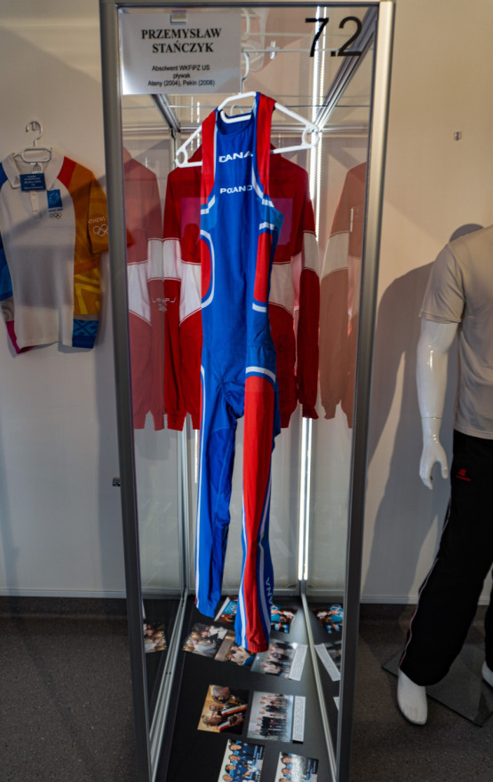 Można też zobaczyć kolce Marcina Lewandowskiego (lekkoatletyka) czy olimpijską marynarkę Krzysztofa Krupeckiego (trener wioślarstwa). Ciekawym eksponatem jest strój pływacki Przemysława Stańczyka, czyli tzw. „skóra”, która dzisiaj jest już zakazana.
