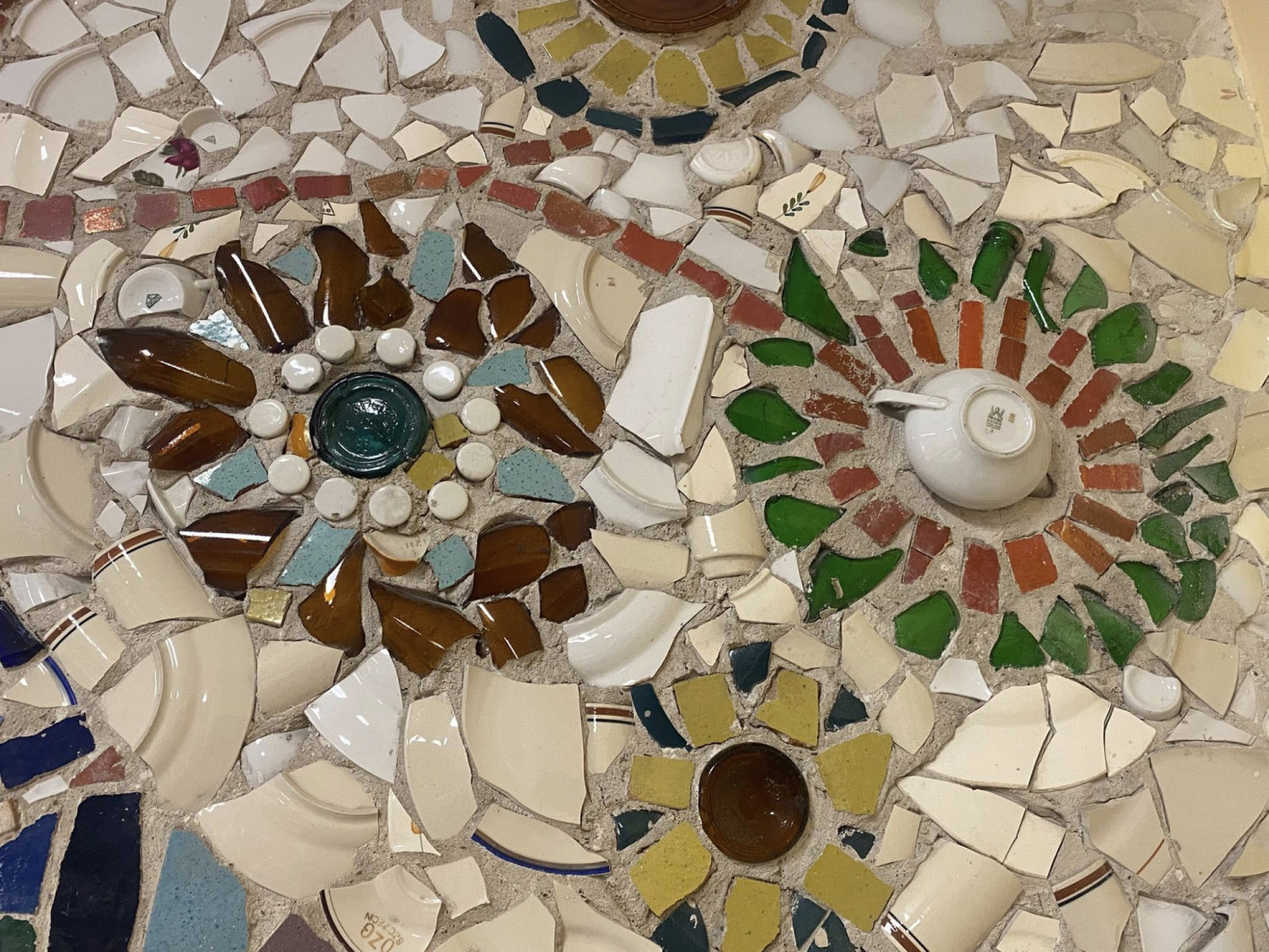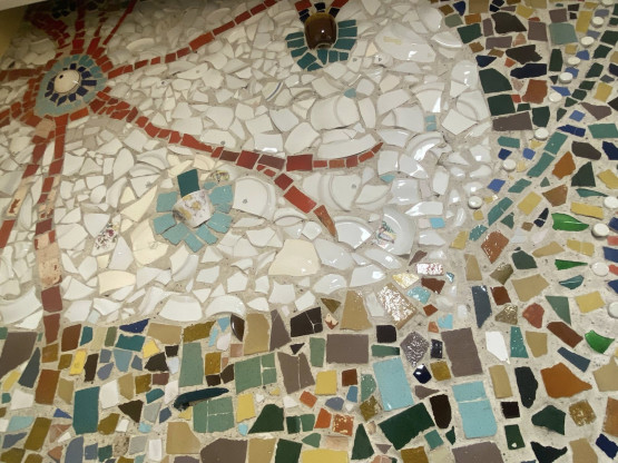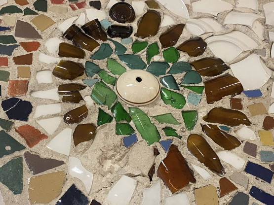 – Czasami uszkodzone, pęknięte lub połamane talerzyki czy kubeczki na coś się przydają. W tym przypadku wiemy, że były odkładane specjalnie na udekorowanie tej mozaiki – informuje.