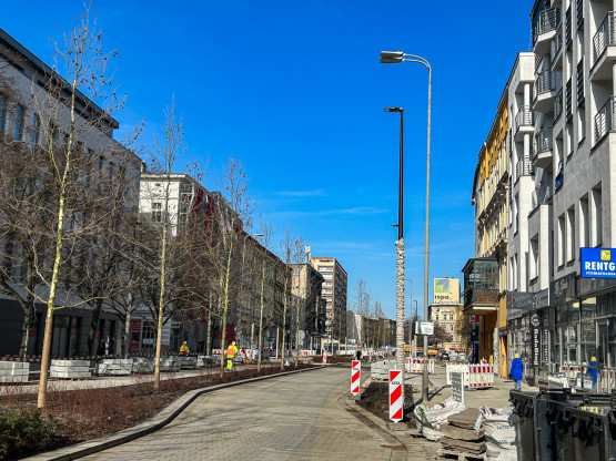 – Pomiędzy pasażem handlowym a jezdnią wkrótce pojawi się szeroki pas zieleni, w obrębie którego zaprojektowano zieleńce obsadzone bylinami, z 23 nowymi drzewami oraz ławkami. W tej części pojawią się jeszcze niskie lampy w formie słupków o wysokości około 1 metra.