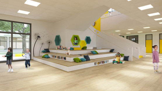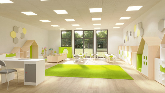 W dwukondygnacyjnym, energooszczędnym obiekcie zaplanowano 14 oddziałów przedszkolnych (po 7 na parterze i piętrze). Na parterze znajdzie się również klub dziecięcy z wydzielonym osobnym wejściem. Zaprojektowano otwarte wewnętrzne atrium i windę. Co będzie czekać codziennie na dzieci?