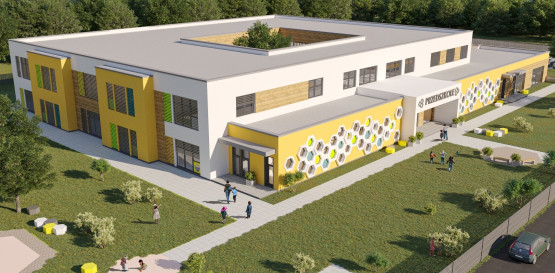 Na zewnątrz powstanie bezpieczne boisko wielofunkcyjne o nawierzchni syntetycznej, plac zabaw (m.in. z ścieżką sensoryczną i górką saneczkową) i ogród warzywno-kwiatowy. Dopełnieniem zagospodarowania terenu będą nasadzenia zieleni, ogólnodostępny parking przeznaczony dla rodziców (z kontrolą dostępu) oraz plac gospodarczy z miejscami parkingowymi dla personelu i dostawców.