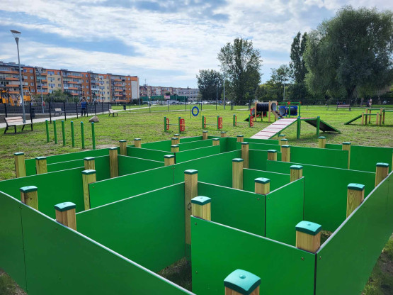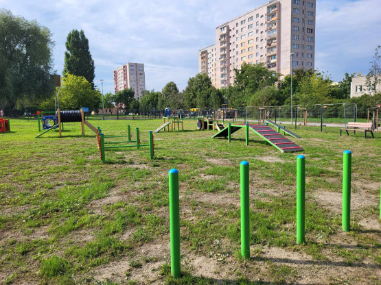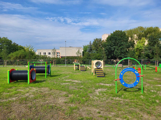 Psy mogą korzystać z ogrodzonego wybiegu z urządzeniami do zabawy i nauki. Są także piesuary, a poza wybiegiem, również poidełko – zarówno dla psów, jak i ludzi.