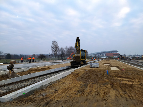Wkrótce na placu budowy planowany jest montaż słupów trakcyjnych i zbiorników prefabrykowanych. Cały czas trwają intensywne prace w budynku podstacji i w rejonie przyszłej pętli. U zbiegu ulic Romera i Szafera prowadzone są roboty związane z siecią wodociągową i kanalizacją deszczową.