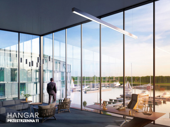Nad brzegiem Jeziora Dąbie, przy ul. Przestrzennej 11, powstaje Hangar – przystań dla biznesu. Nowoczesny biurowiec, architektonicznie nawiązujący do historycznej formy sąsiedniego, prawdziwego hangaru.