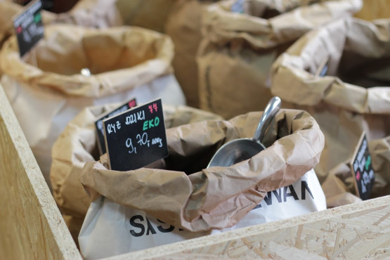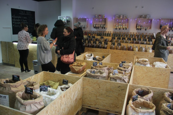 Wchodzisz do sklepu i w papierowe torebki, słoiki lub naczynia własne nakładasz tyle danego produktu, ile aktualnie potrzebujesz. W rezultacie płacisz tylko za towar – za taką samą objętość na półkach w markecie trzeba zapłacić czasami nawet dwa razy więcej. „Zmień.to na lepszy skład” to nowy sklep, w którym dwie panie – dietetyczka Joanna Ciszczoń i psychoterapeutka Eliza Omelańczuk – sprzedają zdrową ekologiczną żywność na wagę i bez opakowań.