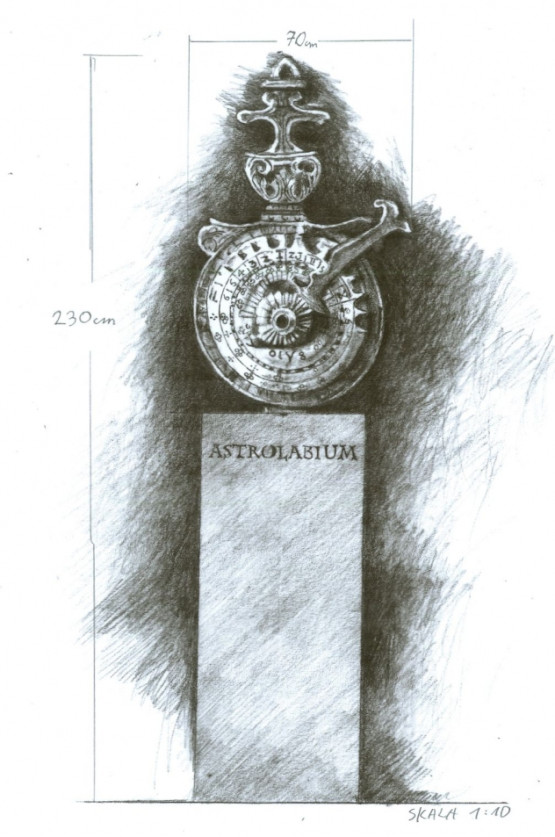 Drugim elementem będzie astrolabium - pomiarowy przyrząd astronomiczny, używany w nawigacji do początku XVIII wieku. W przeszłości służył do wyznaczania położenia ciał niebieskich nad horyzontem, poprzednik sekstantu.