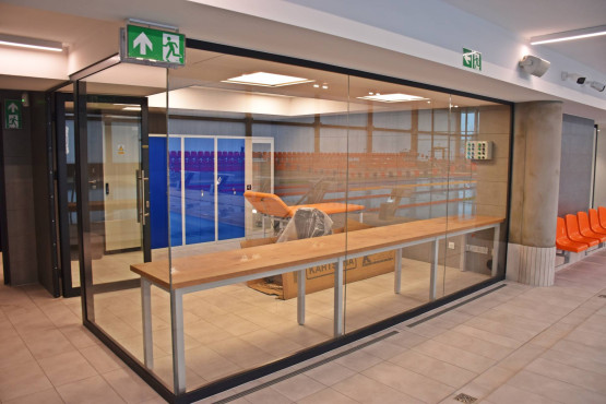 Nowa pływalnia stanęła w miejscu starego basenu, który nie spełniał współczesnych standardów. Jej główną częścią jest 25-metrowy basen pływacki (6 torów po 2,5 metra każdy) o głębokości 1,2-1,8 m. Obok postał płytki basen rekreacyjny ze zjeżdżalnią i 3 torami do nauki pływania, a także dwie sale fitness oraz dwie sauny fińskie. Pływaków będzie można obserwować z trybuny na 149 miejsc i galerii widokowej na 73 miejsca. Zaplanowano przebieralnie dostosowane do potrzeb osób niepełnosprawnych. Na przebudowanym parkingu wyznaczono więcej miejsc parkingowych.