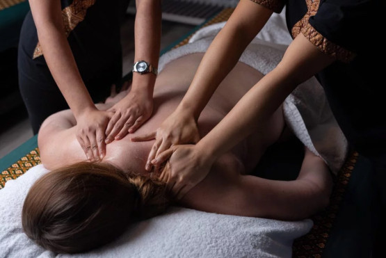 Masaż tajski to połączenie akupresury, ajuwerdy i pasywnej jogi. Wykonywany jest w pozycji leżącej na macie w różnych pozycjach, jak: postawa siedząca, leżenie przodem, tyłem i bokiem. Masaż polega na rytmicznym uciskaniu oraz rozciąganiu określonych partii ciała za pomocą dłoni, łokci, przedramion oraz stóp. Masaż wykonywany jest w okolicach kanałów energetycznych, dzięki czemu powoduje uczucie zrelaksowania oraz harmonii.