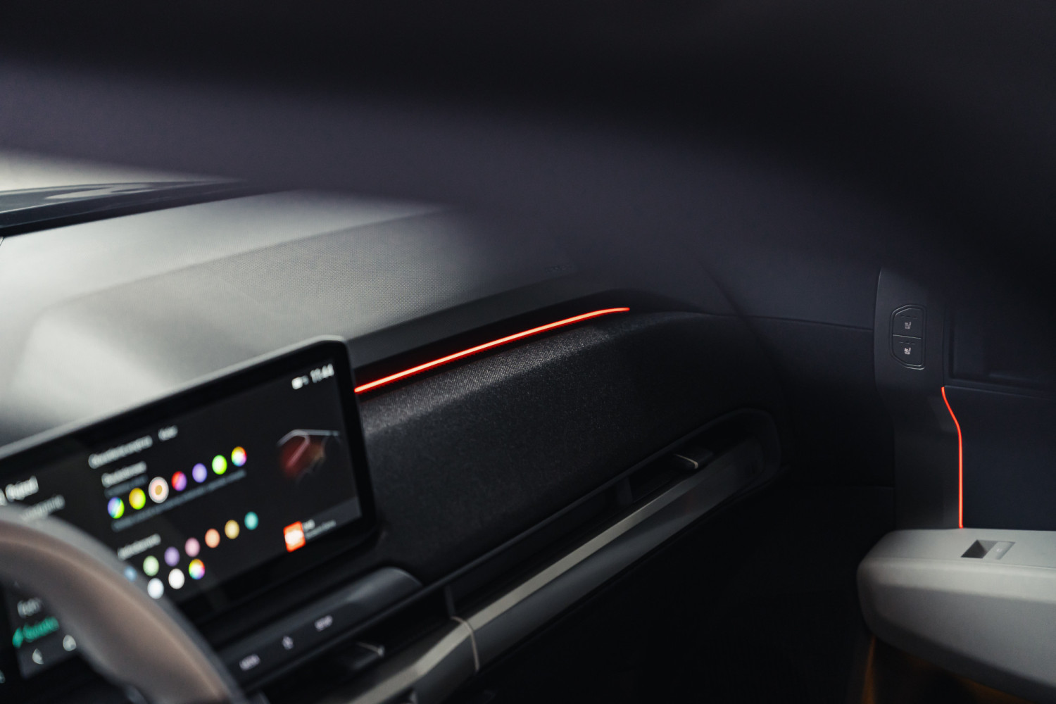 Wnętrze wykonane zostało z materiałów ekologicznych: tkanin z recyklingu oraz tworzyw bio. Dzięki temu EV3 łączy zaawansowaną technologię z troską o środowisko.