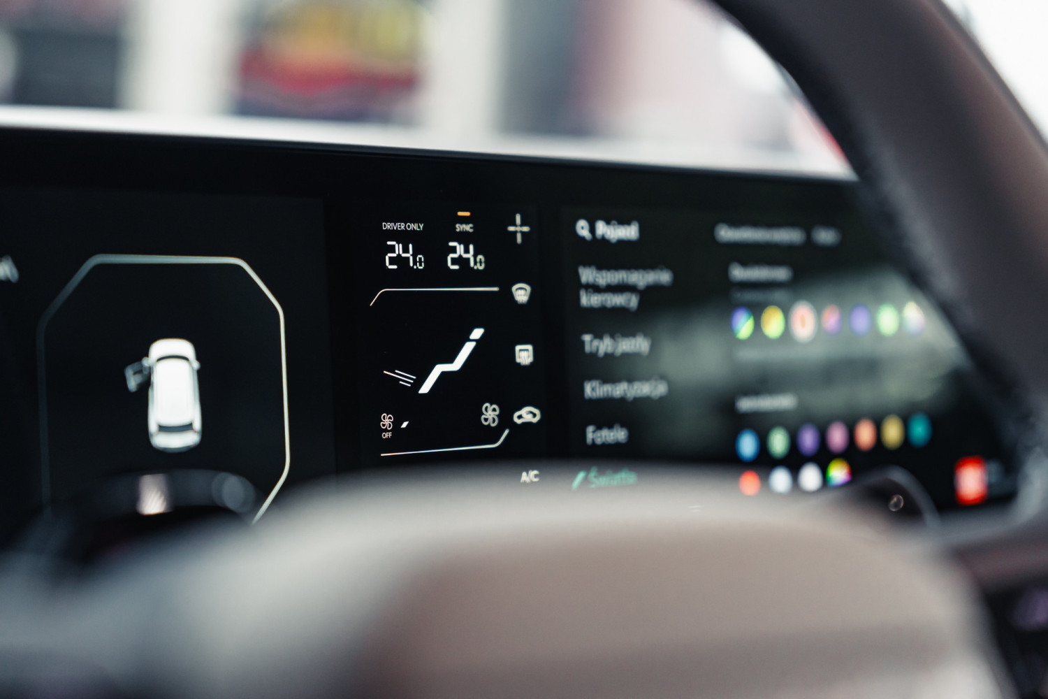 W kabinie znajdziemy nowoczesny 30-calowy panel łączący zestaw wskaźników z systemem infotainment. Konsola środkowa skrywa wysuwany stolik, a fotele w trybie „relax” zapewniają komfort podczas postojów.