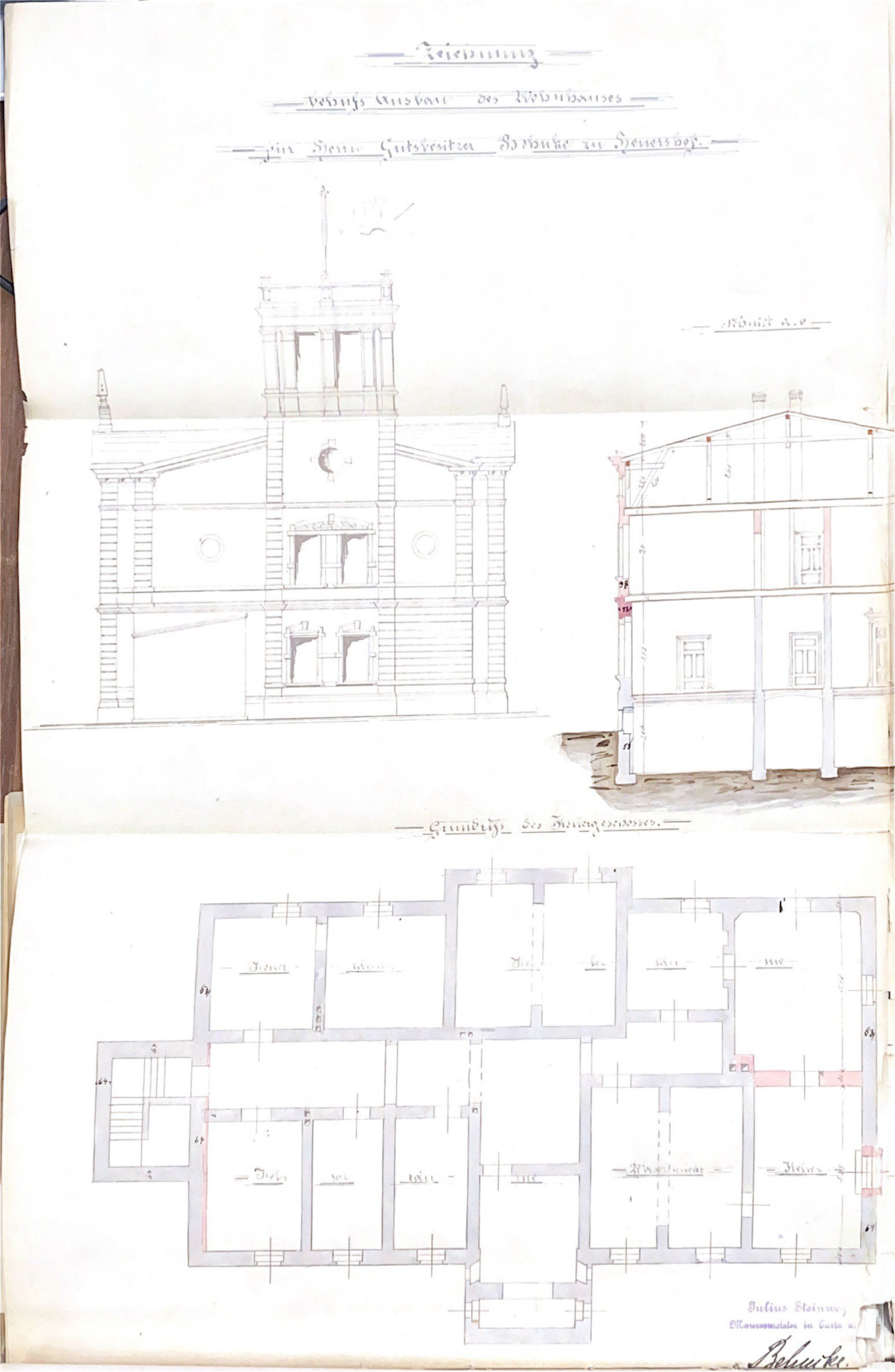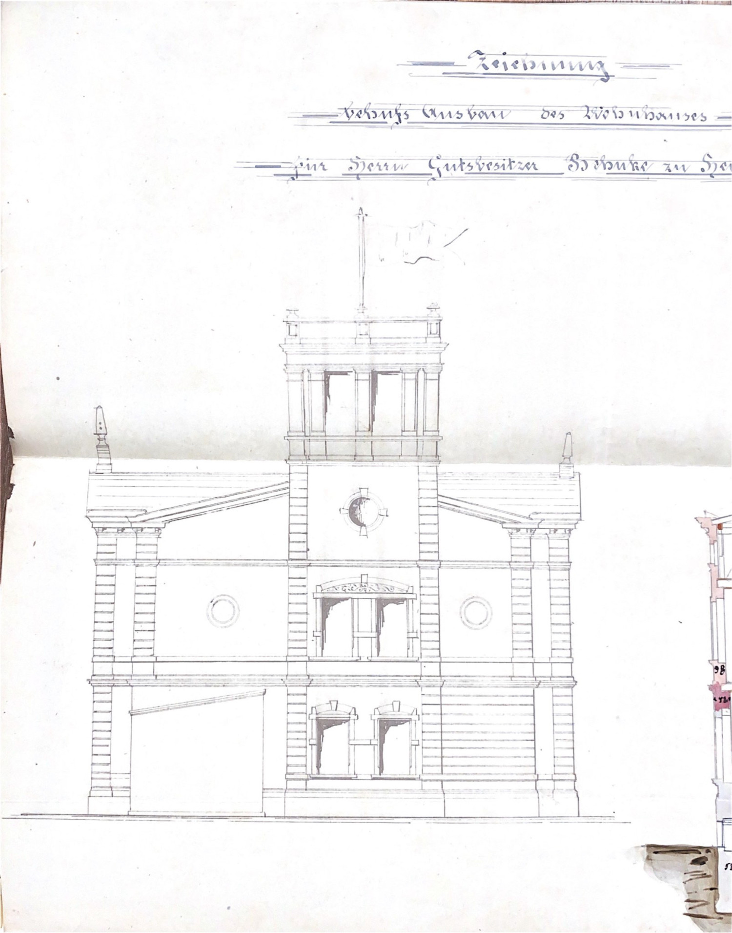 Zabytek musi zostać odtworzony, ale właściciel chce, żeby wyglądał nieco inaczej niż teraz. W archiwum znalazł przedwojenny projekt przebudowy dworku, który najprawdopodobniej nigdy nie został zrealizowany. Ówczesny projektant nadał mu neorenesansowy sznyt, dodając z boku wieżyczkę. Na rysunku całość przypomina nieco dworek z ul. Husarów na Gumieńcach.