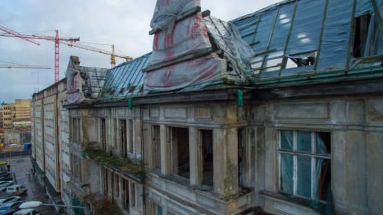 - Właściciel wykonał prace zabezpieczające m.in. w zakresie stężenia elewacji budynku i podstemplowania zagrożonych elementów konstrukcji, naprawy fragmentów więźby dachowej i tymczasowego poszycia dachu z folii, usunięcia zagrożonych płyt balkonowych, naprawy opierzeń i odwodnienia w obrębie elewacji - informuje Michał Dębowski, miejski konserwator zabytków.